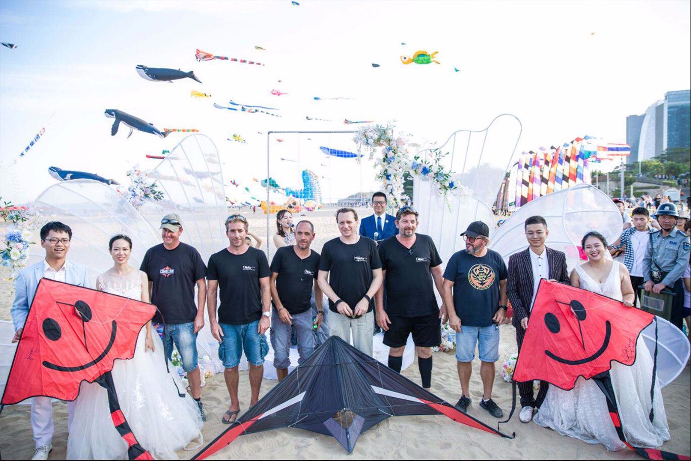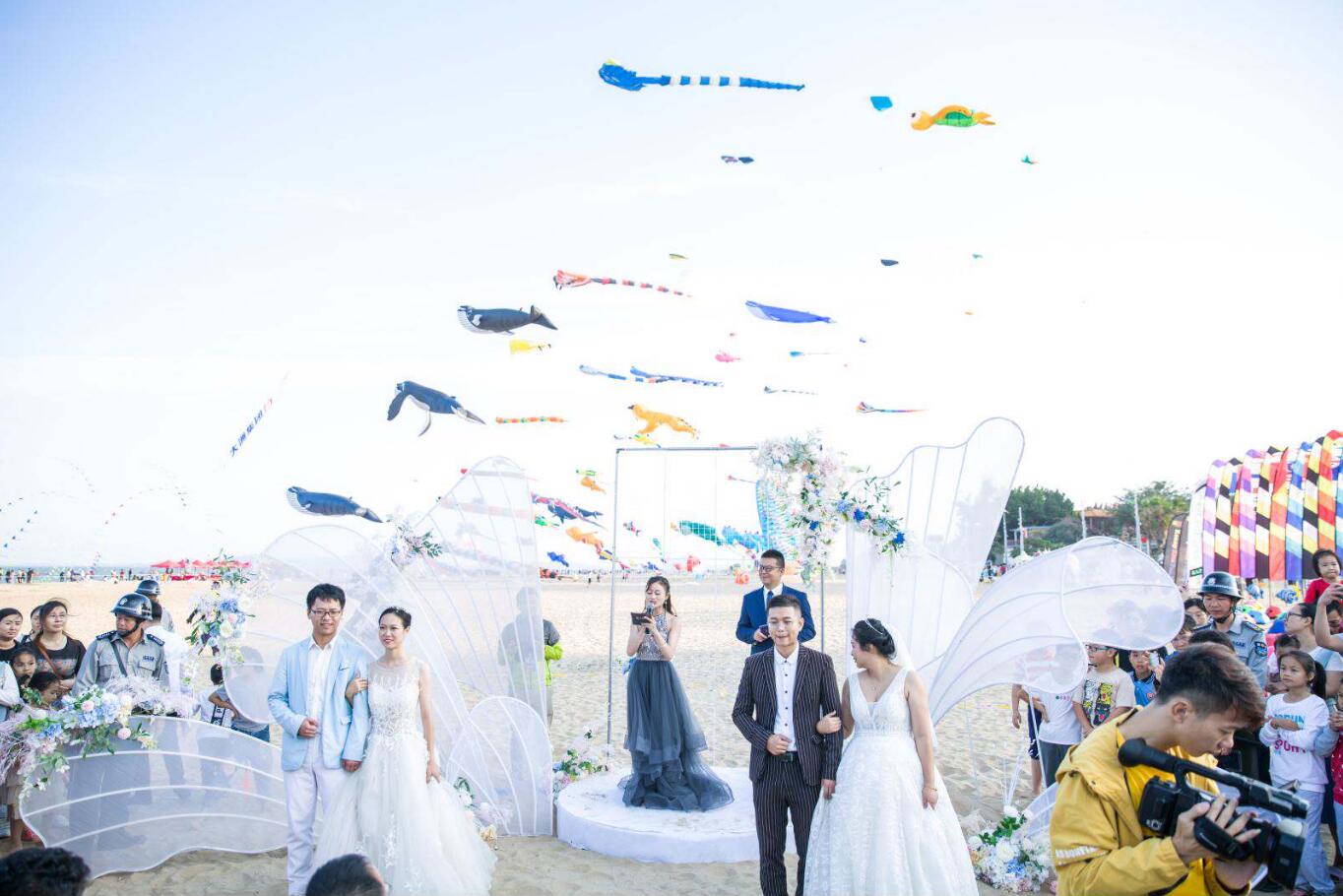 本次風(fēng)箏節(jié)最為溫馨的環(huán)節(jié)莫過于主辦方精心設(shè)置的風(fēng)箏婚禮,一對對新人在漫天彩鳶的包圍下,在大家的見證下,以風(fēng)箏為媒,舉辦了獨一無二的風(fēng)箏婚禮,收獲了滿滿的感動與祝福。