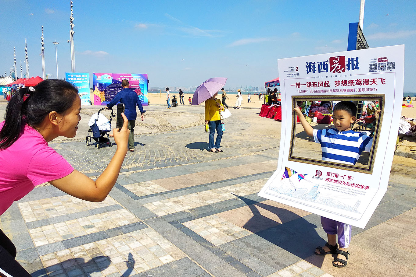 在風(fēng)箏節(jié)現(xiàn)場,大洲集團海西晨報共同準(zhǔn)備了拍照神器———“城市天際線”主題取景框,吸引了許多市民在風(fēng)箏節(jié)現(xiàn)場留下與天際線的最美合影。